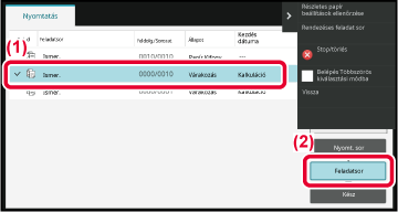 A feladatok a listák között [Nyomt. sor], [Feladatsor] és [Befejezés] sorrendben a
