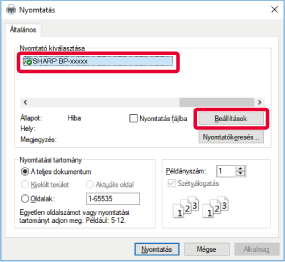 Válassza ki a készüléknek megfelelő nyomtató-illesztőprogramot, majd kattintson a [Beállítások] gombra.
