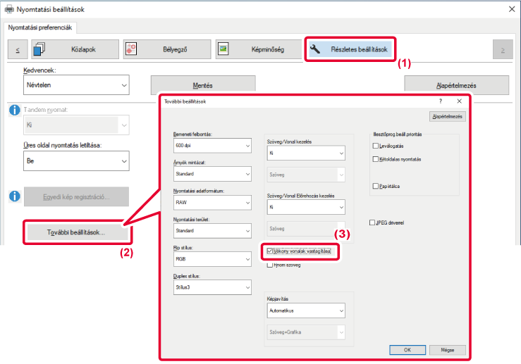 Ez a funkció növeli a teljes vonal vastagságát, amikor a nyomtatott vonalak nem élesek