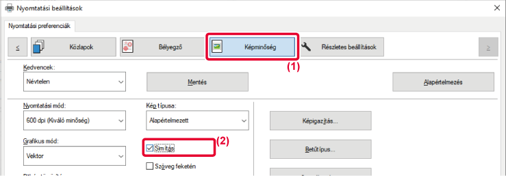 - Kattintson a [Simítás] jelölőnégyzetre, hogy megjelenjen a