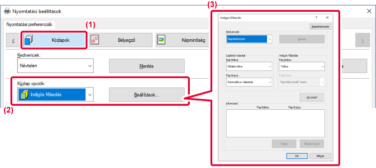 normál, a 2. tálcába pedig szükség esetén újrahasznosított papír van betöltve, a Másolat