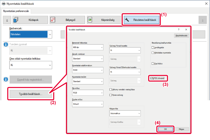 - Kattintson a [JPEG driverrel] jelölőnégyzetre, hogy megjelenjen a
