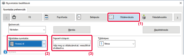 KÉTOLDALAS NYOMTATÁS MEGHATÁROZOTT OLDALAKKAL A PAPÍR ELÜLSŐ OLDALÁRA (FEJEZET KÖZLAPOK)