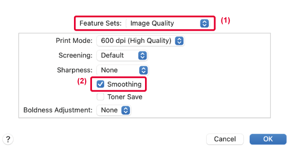 MacOS 12 vagy korábbi verzió esetében válassza a [Printer Features], majd a [Image