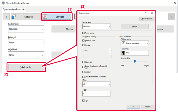 - Konfigurálja a rejtett minta nyomtatása beállításait, és kattintson az [OK] gombra.