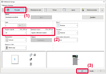output" è impostato su [Uguale a dimensioni originali], "Tipo carta" viene impostato