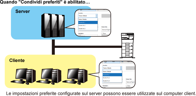 Per ulteriori informazioni sulle impostazioni, consultare la guida in linea del driver della stampante.Quando questa macchina è impiegata come stampante condivisa, se "Preferito" è impostato