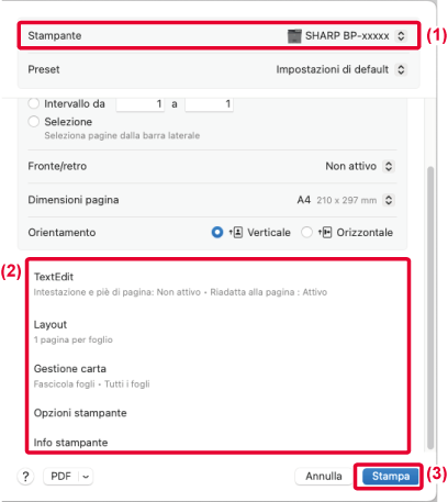 Nell'esempio seguente viene illustrato come stampare un documento da "TextEdit", un'applicazione