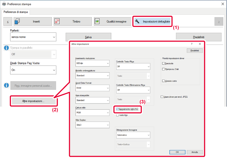 Questa funzione consente di aumentare lo spessore delle righe stampate nel caso in