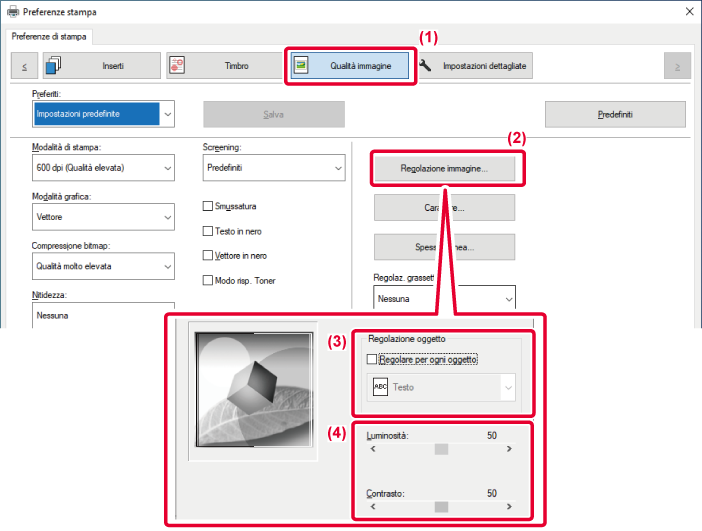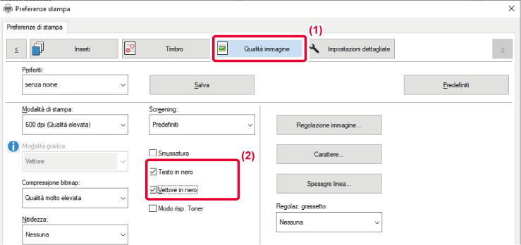 .Nel driver della stampante sono disponibili impostazioni predefinite che è possibile