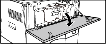 Nadat de tonercartridge is vervangen, wordt automatisch de modus voor afbeeldingsaanpassing geactiveerd. Open de voorklep niet terwijl dit gebeurt..png)