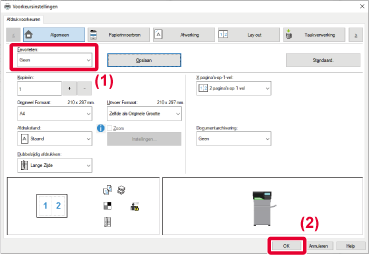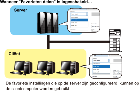 Zie voor meer informatie over de instellingen de Help van de printerdriver.Wanneer u dit apparaat als een gedeelde printer gebruikt, en als “Favoriet” is ingesteld