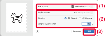 U kunt de instellingen Papierformaat, Stand van papier en Vergroten/verkleinen selecteren.