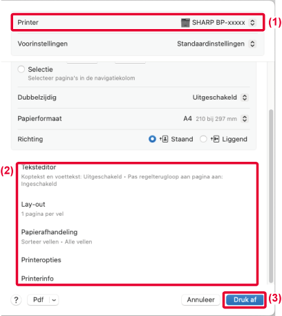 van de printerdriver en de configuratie in een macOS-omgeving.