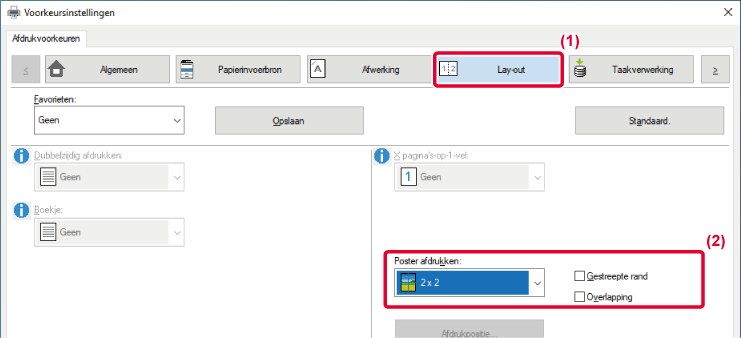 - Selecteer het aantal vellen dat moet worden gebruikt bij 'Poster afdrukken'.