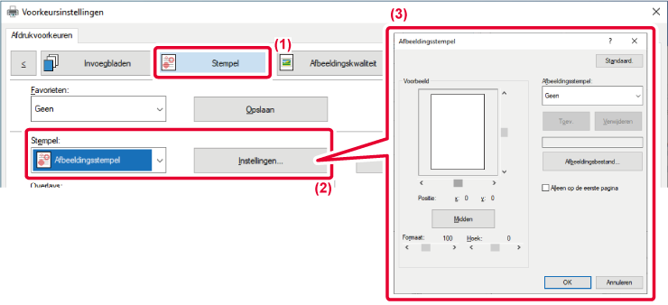 - Selecteer [Afbeeldingsstempel] bij 'Stempel' en klik op de toets [Instellingen].