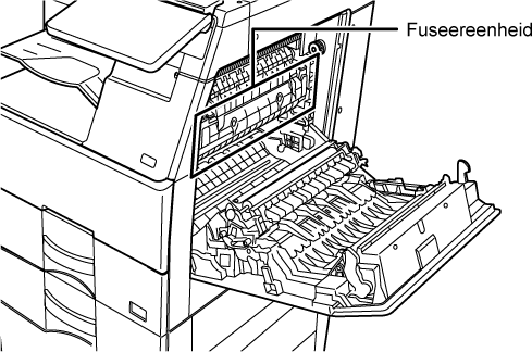 Wanneer papier vastloopt, wordt het bericht "Papierstoring" weergegeven op het aanraakscherm
