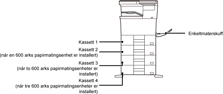 | Skuff | I normal status | Med brevhode eller fortrykket papir stilt inn |