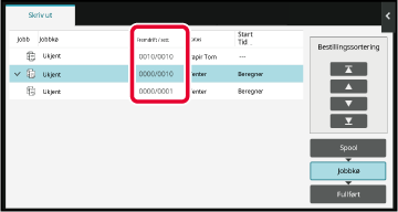 Trykk på tasten [Spool], [Jobbkø] eller [Komplett] etter ønske for å skifte jobblistevisningen