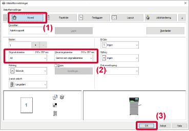 maskinen støtter, velger du papirstørrelsen for utskrift i "Utmatningstørrelse".