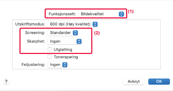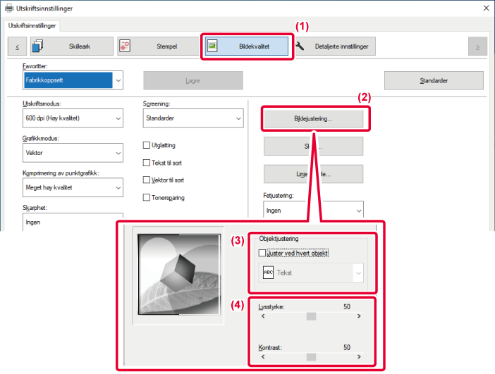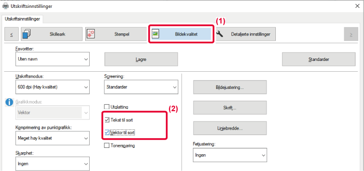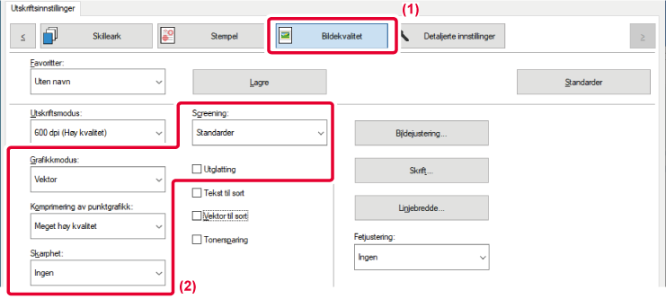 vises.Forhåndsbestemte innstillinger for ulik bruk er tilgjengelige i maskinens skriverdriver.