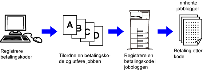 Brukes for å kategorisere resultatene av de utførte utskriftsjobbene for å oppnå effektiv administrasjon. Du kan for eksempel tilordne en kode etter kunde og innhente kostnadsinformasjon etter kunde fra jobbloggene. Eksempel på kode: Utstedelse for bedrift A |