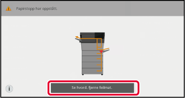 Hvis det oppstår feilmating av papir, vises meldingen "Papirstopp" på berøringspanelet,