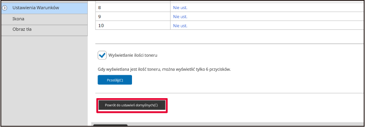 Wybierz [Ustawienia Warunków], a następnie naciśnij przycisk [Przywróć Ustawienia Domyślne].