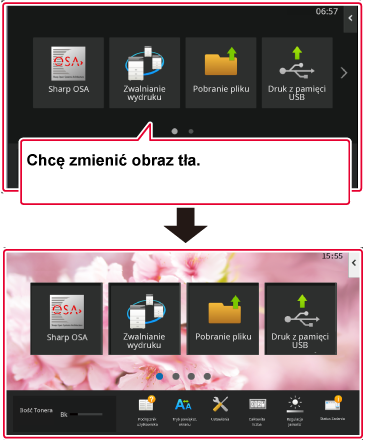 Naciśnij przycisk [Ustawienia Systemowe] → [Ustawienia ekranu początkowego] → [Obraz tła], a następnie [Zmień].