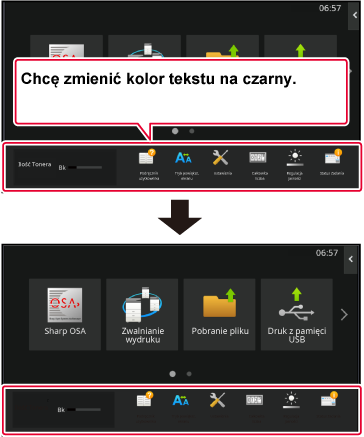 Otwórz panel sterowania ekranu głównego i naciśnij [Zmień kolor tekstu w oknie Home].
