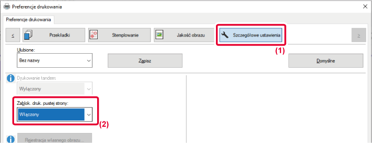2. Wybierz ustawienie [Włączony] dla opcji [Zablok. druk. pustej strony].