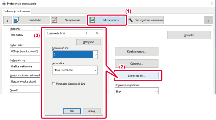 Jeśli dane zawierają linie o zróżnicowanej szerokości, można również wydrukować wszystkie