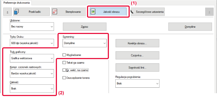 .W sterowniku drukarki dostępne są ustawienia predefiniowane odpowiednie do różnych