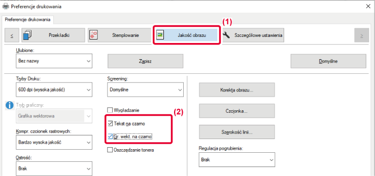, aby wyregulować obraz.Podczas drukowania kolorowych obrazów w odcieniach szarości bardzo jasny tekst i linie