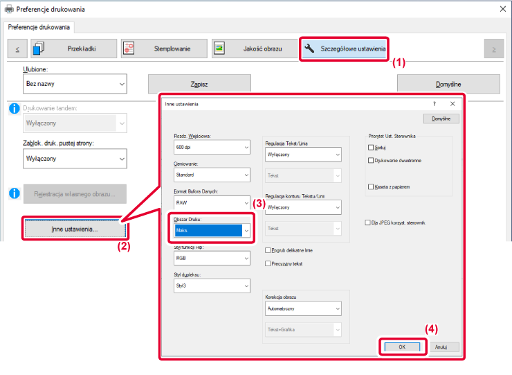 Jeżeli pole wyboru [Z nadrukiem] zostało zaznaczone w ustawieniu