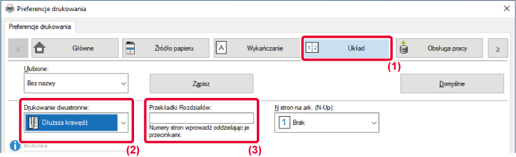 DRUKOWANIE DWUSTRONNE Z DRUKOWANIEM WYBRANYCH STRON NA PRZEDNIEJ STRONIE (PRZEKŁADKI