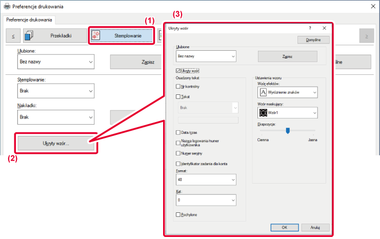 - Skonfiguruj ustawienia dla funkcji drukowania ukrytego wzoru i kliknij przycisk [OK].