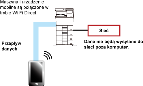 Urządzenie i urządzenie przenośne komunikują się bezpośrednio za pomocą sieci Wi-Fi.