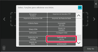 As definições serão guardadas na máquina e aplicadas.É possível alterar a posição da tecla [Ecrã inicial].