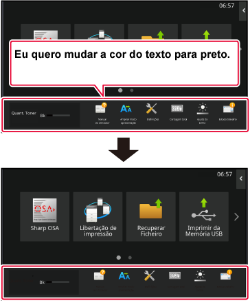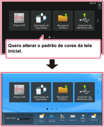 As definições serão guardadas na máquina e aplicadas.Esta secção explica como alterar uma tecla de atalho no ecrã inicial.