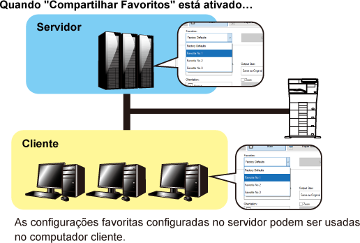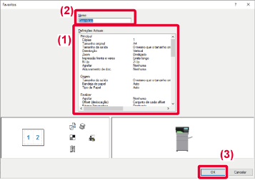 Para obter explicações sobre as definições, consulte a Ajuda do controlador de impressora.Ao utilizar esta máquina como impressora partilhada, se "Favorito" estiver definido