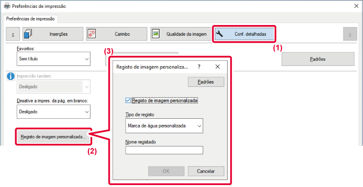 - Selecione [Marca d'Água] em"Carimbo" e clique no botão [Configurações].