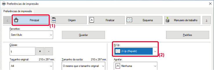 - Selecione a contagem de repetição em "N-Up".