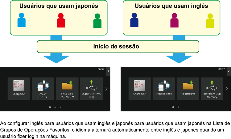 um idioma para cada grupo e essa definição é aplicada automaticamente durante o início