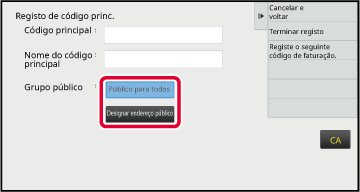 Público para todos: regista o código de faturação como um código público para todos os utilizadores que utilizam a máquina.