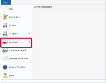 Selectați [Imprimare] din meniul [Fişier] al aplicaţiei WordPad.