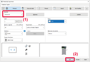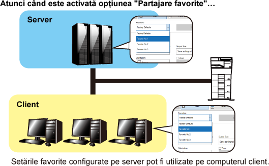 Pentru explicaţi despre setări, consultaţi fereastra de asistenţă a driverului imprimantei.Când utilizați acest aparat ca imprimantă partajată, dacă „Favorite” este setat în