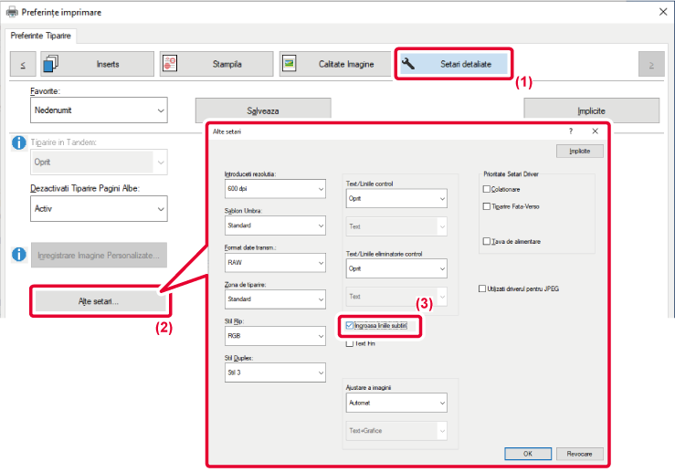Această funcţie măreşte lăţimea tuturor liniilor atunci când liniile imprimate nu