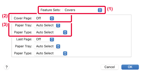 - Selectați [Printer Features] din „Printer Options” și apoi selectați [Covers].
