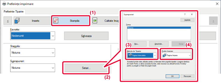 - Selectați [Pagina Intercalata] din "Metoda de Tiparire".